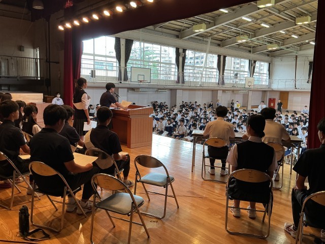 生徒会長、生徒会役員候補者、および応援演説者より、それぞれの想いが熱く語られる場となりました。緊張の中であったと思いますが、一人一人、具体的でわかりやすく立派な演説を披露してくれました。