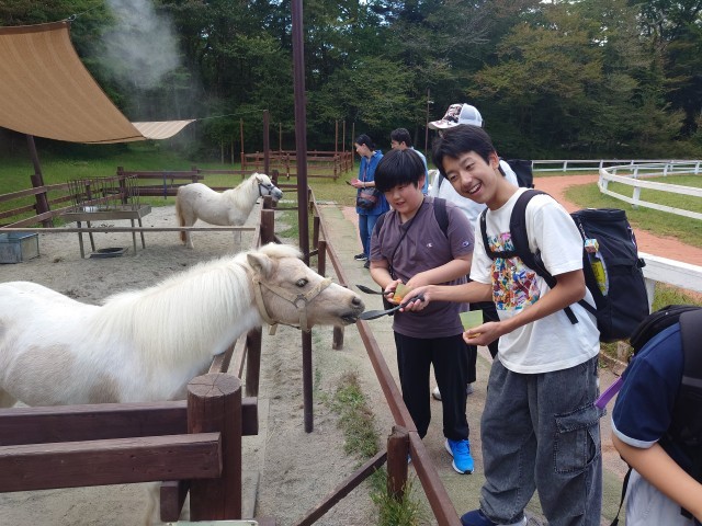 食事後は、小動物のコーナーへ。エサをあげて触れ合う生徒もいました。