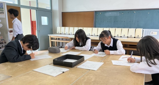 本日の昼休みには30人以上もの生徒が会場を訪れ、熱心に展示を見学していました。