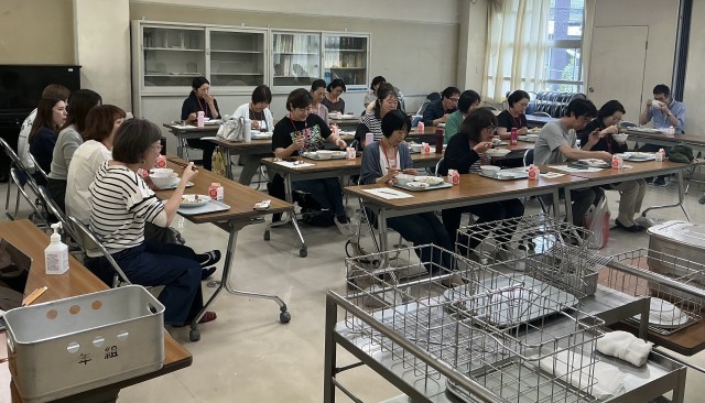 太子堂調理場長の小林様より学校給食についての説明・ご講義、その後の質疑応答等もあり、保護者の方々に学校給食についての理解を深めていただく機会となりました。