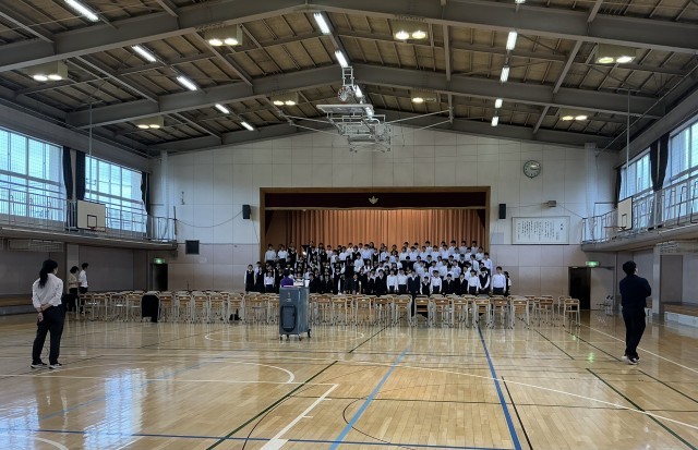 本日の6時間目、1学年は体育館で学年合唱練習を行いました。