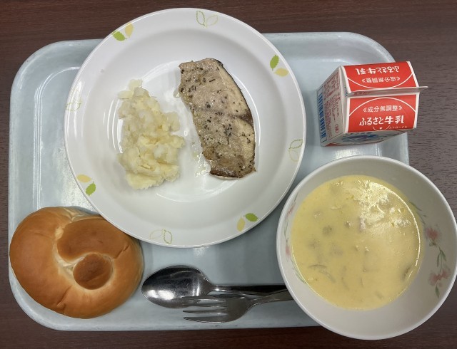 ミルクパン 魚のハーブ焼き チーズポテト コーンスープ 牛乳