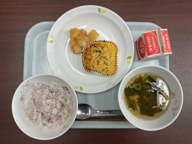 ゆかりごはん 切干し大根の卵焼き じゃがいもの甘辛煮 すまし汁 牛乳