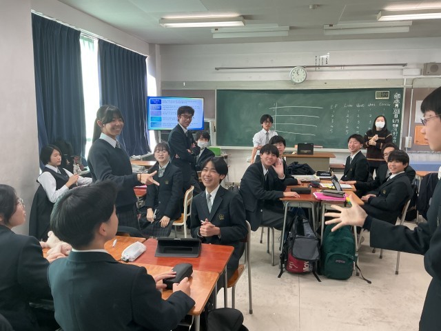 3学年(英語) 公開日 2025/12/23 更新日 2025/12/23 できごと ALT(外国語指導助手)のMs.Jessicaもと、クリスマステーマの言語活動をしました。✊はrock ✌️はscissors ✋はpaper ジャンケンで順番を決めていました。