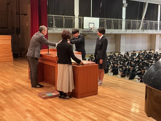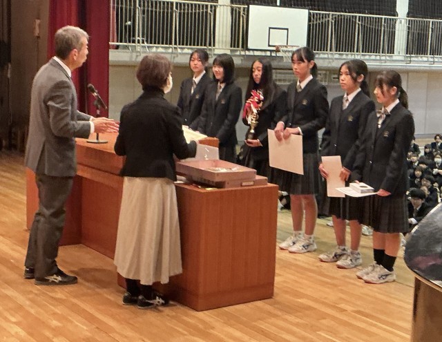 男子バレー部、税についての作文、バドミントン部、同署感想文、たくさんの素晴らしい努力の成果の表彰の後、2学期終業式が行われました。