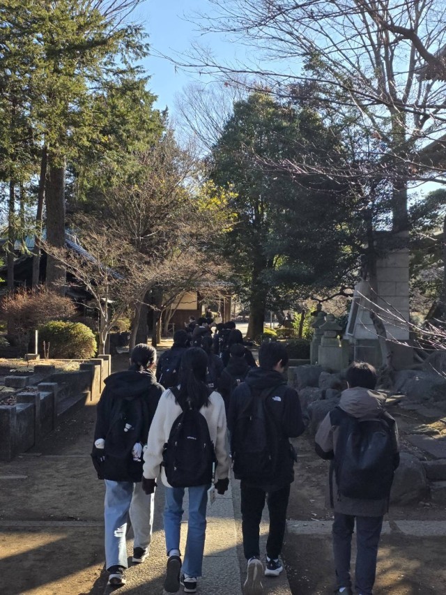 寒い日が続きますが、本日は晴天に恵まれ、生徒達は班ごとに計画したルートを巡っています。