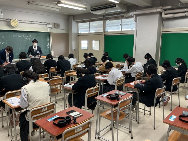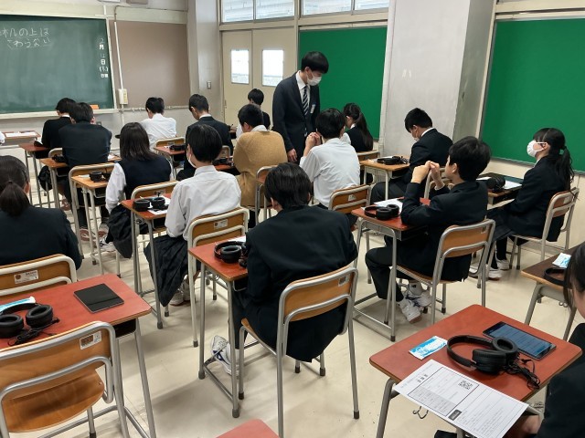 ESAT-J YEAR-1&2 公開日 2026/02/12 更新日 2026/02/12 できごと 東京都立入学者選抜でも実施される英語スピーキングテストを1年生・2年生でも実施しています。取り扱いの説明がタブレットを使用しながらあり、ヘッドセットも使ってみました。実際のテスト時間は12〜13分手程度ですが、静まり返った中でマイクに向かって発音をしていました。