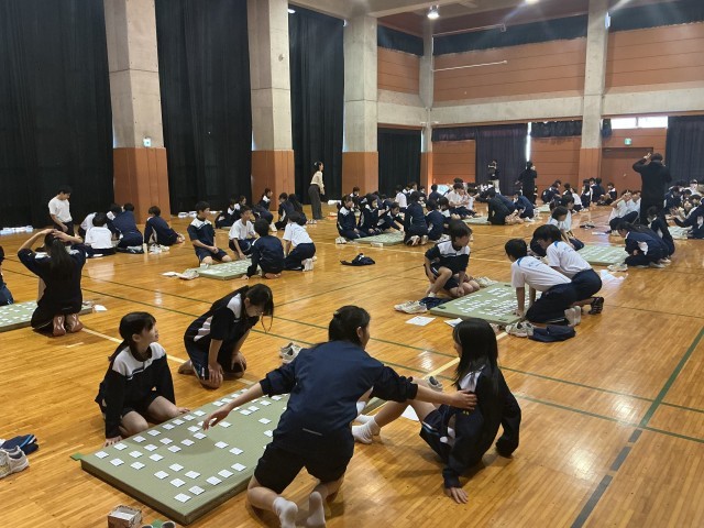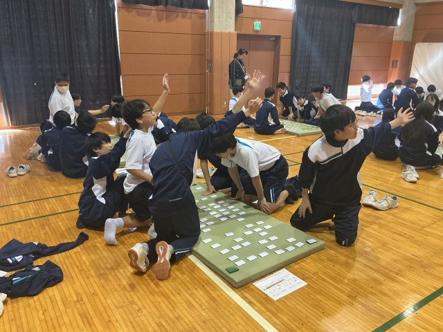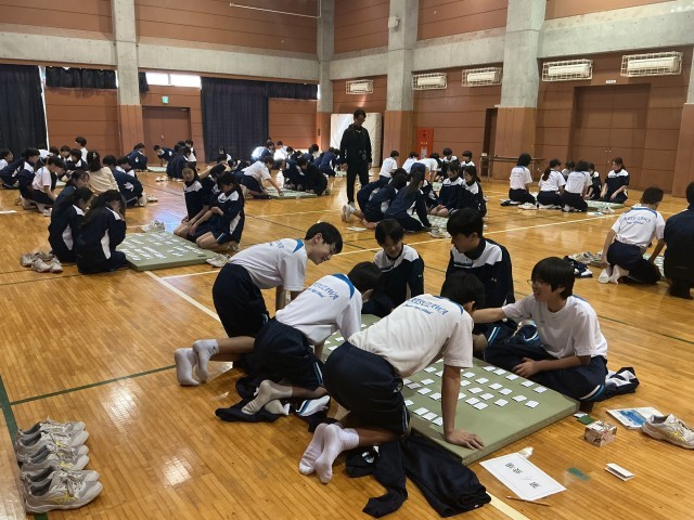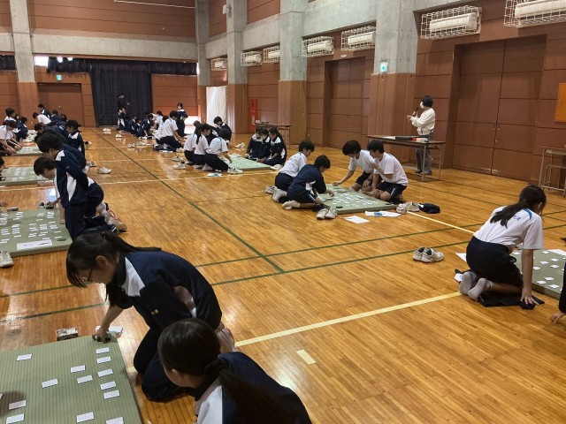 本日5・6時間目、格技室にて1学年の百人一首大会を行いました。