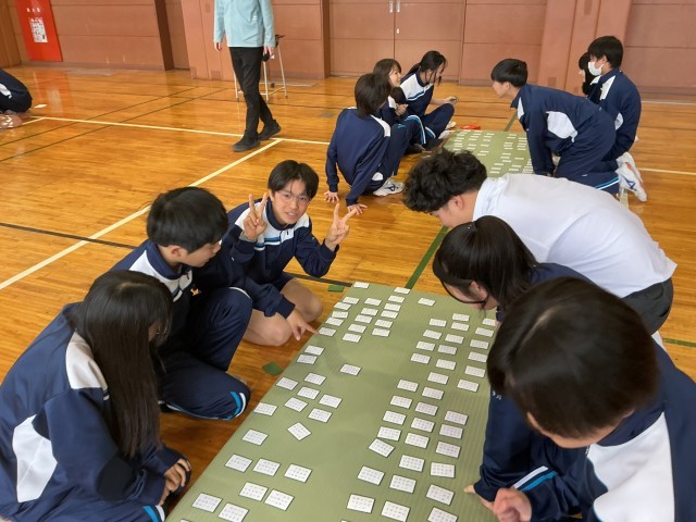 第二学年(国語) 公開日 2026/03/06 更新日 2026/03/06 できごと 百人一首大会が催されました。畳に札を並べグループ戦が始まりました。おとなしいグループ、白熱戦に臨むグループ。畳を激しく叩いて歓喜をあげるグループ。楽しい時間です。