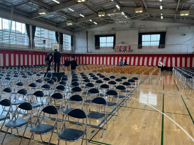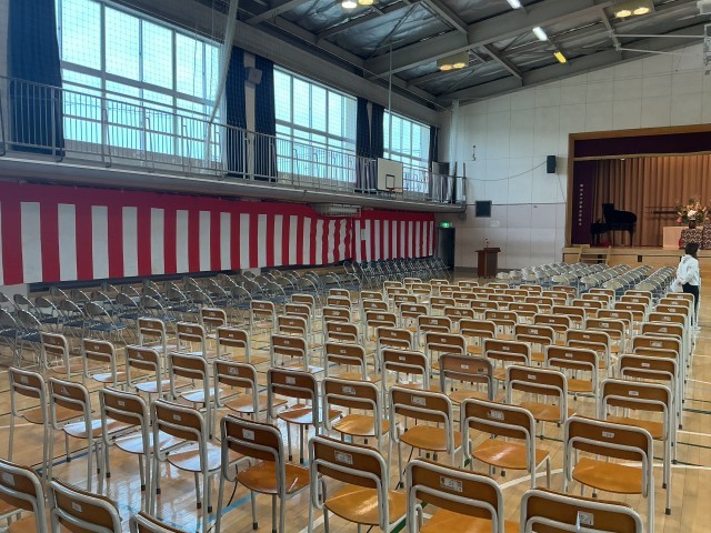 卒業式準備 公開日 2026/03/18 更新日 2026/03/18 できごと 明日は卒業式。1、2年生が心を込めて、ていねいに整備や会場準備をしました。3年生にインフルエンザが流行っているので体調等が心配されますが、これまでの練習や気持ちのこもった歌で素晴らしい式になると思います。明日の登校は、1..2年生8:35〜8:45、3年生8:45〜9:00です。保護者の方の受付は9:00〜となっておりますのでよろしくお願いいたします。9:25卒業生入場です。