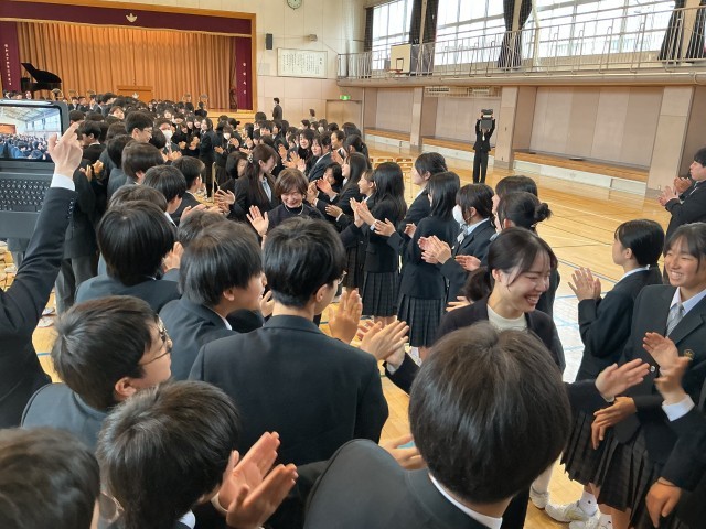 令和7年度 離任式 公開日 2026/03/25 更新日 2026/03/25 できごと 修了式の後、離任式が行われました。離任される方々からお一人ずつお言葉をいただきました。お世話になった感謝の気持ちを力に、これからの生活に繋げていきましょう。離任される方々、今まで松沢中のために様々にご尽力くださり、本当にありがとうございました。