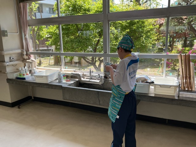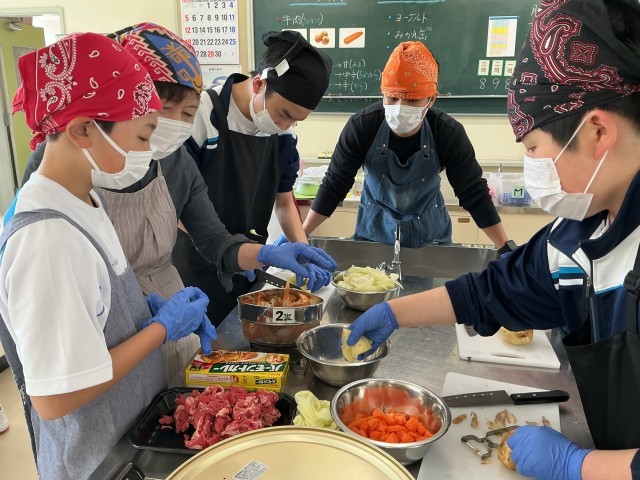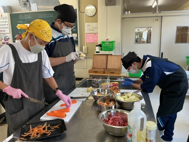 なれない包丁で人参を切ったり、じゃがいもの皮むきをしています。