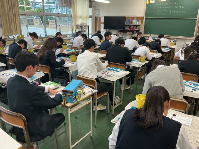 美術室では2年生がレタリングを行っていました。絵と組み合わせて意味を伝える文字を制作しています。