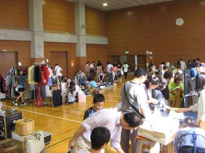 例年続いておりました松中バザーが、今年も10月6日(日)に開催されました。松中会・おやじの会・PTAが主体となり教職員と有志生徒のお手伝いにより、今年も盛況に終えることができました。バザーを始め、手作りケーキの喫茶室、おやじの会の焼きそば、PTAのフランクフルトやポップコーン、生徒による震災復興のボランティア物産販売など、盛り沢山の内容で、開始前からお客様の列ができておりました。残念ながら今まで松沢中学校を支えてくれた松中会(松沢中PTAのOB会)が今年で実質的な活動を終えるため、今年度をもちまして40年以上続きました松中バザーも終わりになります。今年も含め、今まで松中バザーを運営し支えてくれた皆様、御来場してくれました皆様、本当にありがとうございました。