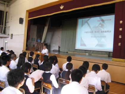 6月21日に実施された第1回進路説明会に続き、第2回進路説明会が10月11日(金)の午後に開かれました。今回の説明会では、第3学年生徒と保護者の同伴で、都立高校及び私立高校の詳しい入試選抜方法の説明や昨年度との相違点を主に、説明が行われました。10月には珍しく暑い中、生徒や保護者は真剣に話を聞いてました。今後の進路選択の一助になればと思います。
