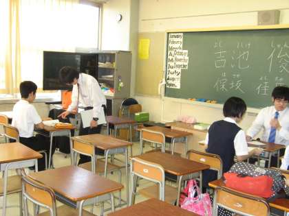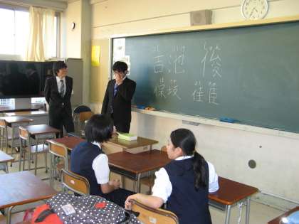 前回ホームページでお知らせしました、ボランティア大学生による「大学生による勉強会」が始まりました。日大文理学部の大学生2名の協力により、今日は授業の補習や宿題の補助、返されたテストの復習等を行いました。今回は最初であり、文化祭の取組週間とも重なり、生徒6名の参加でした。しかし、生徒たちは学生と和気藹藹で補習を進め、下校時間間近に「もう終わらせて、早く下校しましょう。」と促されるほど楽しそうに学習をしていました。「大学生による勉強会」は事前の申し込みは必要ありませんので、今後も気軽に参加してください。