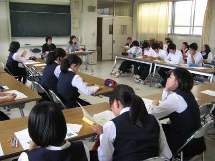 老人ホームボランティアの講習会が、5月23日(金)の放課後に行われ、33名の生徒が参加しました。松沢中学校では、老人ホームボランティアを松沢地区青少年委員会の協力のもとに、2カ月に1回の割合で実施しています。今回は、ボランティアに際し、ご老人の方々について理解を深めるため、松沢あんしんすこやかセンターから2人の講師をお招きし、お話をうかがいました。