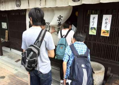 今日は一日班行動です。京都市内の見学と和菓子、象篏、陶芸などの伝統工芸の体験をおこないます。