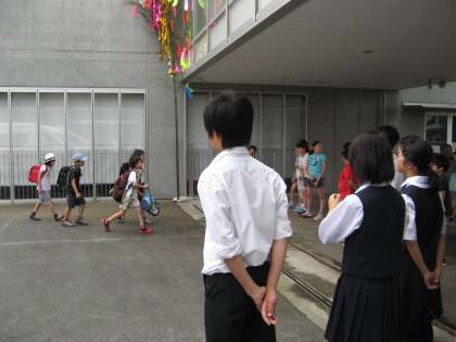 毎年行っている「赤松学舎 合同あいさつ運動}が今年も始まりました。生徒会役員および自治委員が主となり、小学校と合同であいさつの奨励を呼びかけます。今回は松沢小学校に出向き、7月1日から4日かけて実施します。この試みより、小中学校の交流が進むとともにあいさつが活発になればと考えています。