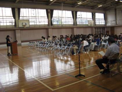 1年生河口湖移動教室の保護者説明会が9月3日に行われました。9月17日(水)〜19日(金)の3日間、河口湖の畔にある河口湖林間学園に宿泊し、多くの活動に取り組みます。自然に親しむ、集団生活、友人や教員との繋がり…、生徒の安全を第一に多くの事を学べる移動教室を図れるよう取り組んでいきます。