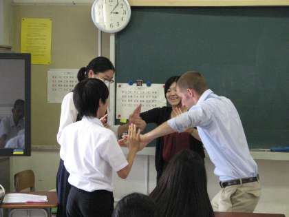 2学期最初の、そして第6回目のイングリッシュタイムの講習会が9月10日の放課後に開かれました。生徒たちはALTと日本語講師による学習にも慣れ、楽しそうに参加していました。コミュニケーションの発達と英語への慣れ親しみを目的に行っていますが、それ以上に楽しそうに活気ある生徒たちの姿を見て嬉しく思っています。