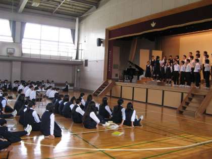 松中祭の練習も中盤を過ぎました。本日10月10日土曜公開授業にて、2年生・3年生・ときわ学級の学年練習を行いました。学年を経るごとに聞きごたえのある合唱を披露していました。まだ、クラスによって完成度の差がありましたが、今後の取組で合唱の出来は均衡してくると思われます。欲目かもしれませんが、本番一週間前での合唱を聞き、当日はかなり期待できるのでは…と思っています。