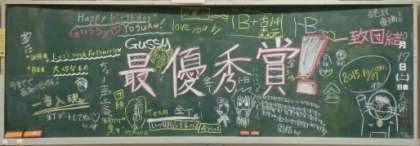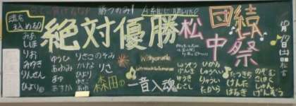 明日17日(土)、松中祭が行われます。リハーサル、準備も終了し本番を迎えるのみとなりました。各クラスの黒板には合唱コンクールのの意気込みが表されています。