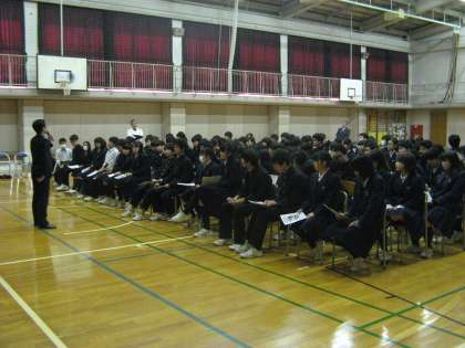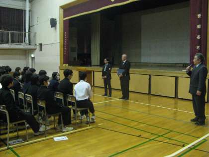 3月4日(金)、成城警察署の安全指導課少年係の係長とスクールサポーターをお招きし、3年生対象「薬物乱用防止教室」を実施しました。薬物の危険性やSNSによる犯罪被害防止を中心に、今後多くの誘惑や犯罪に巻き込まれないよう意識し生活する事を目的に教室を行いました。最初にビデオ視聴を行い、次に実際に起こった犯罪や犯罪被害についての講話をいただきました。今の、そして将来に向けての講話を受け止め、大過なく新たな道を歩んでいくことを願っています。