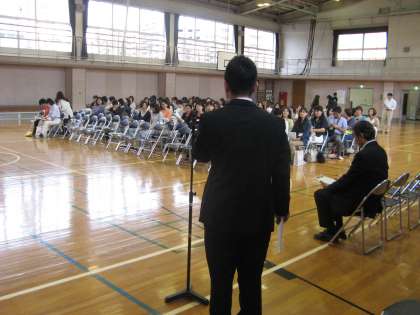部活動保護者会を5月6日(金)に行いました。全体会においては校長挨拶に続いて、担当から部活動の概略を説明し、その後各部活動に別れ顧問から活動計画や方針などの説明や懇談を行いました。部活動は生徒にとって一生の思い出に残る活動であり、生徒の成長にも大きな影響を与える活動です。