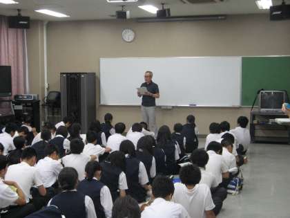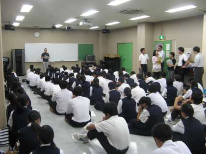 9月13日(火)から始まる2年生職場体験学習に向けて、事業所の方々の思いを知り意識を高めるため、事前講習会を9日(金)に行いました。下高井戸商店街の石井理事をお招きし、下高井戸商店街の歴史・商店街と地域の関係・接客や物販の心構えなどのお話を頂きました。職場体験では、色々とご迷惑をお掛けしお世話になるかと思いますが、ご協力宜しくお願い致します。