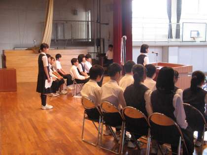 生徒会本部役員選挙の立会演説会が、10月7日(金)に行われました。各立候補者は各々、自分達の力で松沢中をより良くしていこうとの熱意を持って、演説を行いました。また、推薦者の応援演説も立派なものでした。どの候補者が選ばれても学校のリーダーとして、活躍してくれると思います。生徒会のよき伝統を引き継ぎさらに発展させるべく、今後の生徒会の活躍がとても楽しみです。