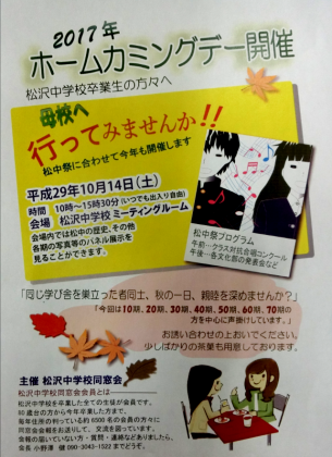 松沢中学校卒業生の方々へ『ホームカミングデー』開催