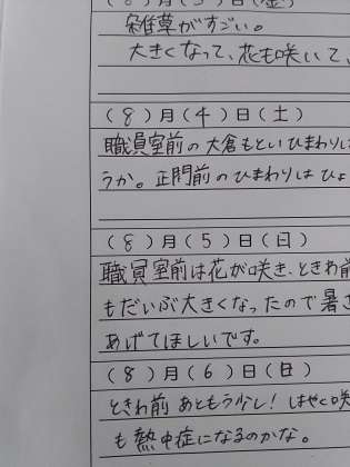 夏休みになってこの暑い中でも、ボランティアの人たちがしっかりと水遣りを続けてく