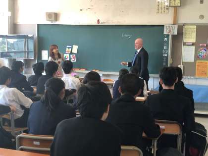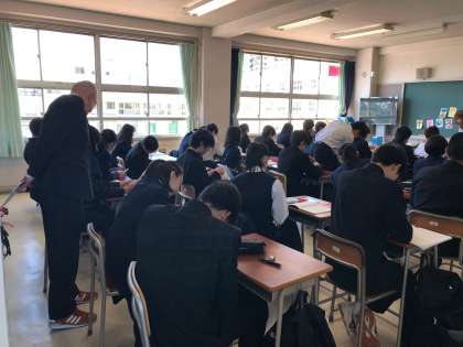 今日はその初日で、ALTの先生は3年C組に入って1日過ごします。朝の学活で自己紹介をし、1日が始まりました。生徒のみなさん、積極的に話しかけましょう!