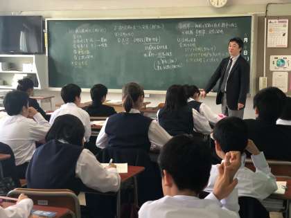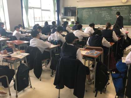 1年生の社会科の授業では、古代文明について学習していました。インダス文明の説明の後、インダス文明に関する豆知識が先生からお話されると、生徒たちは興味深そうに話に聞き入っていました。