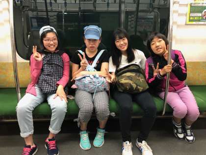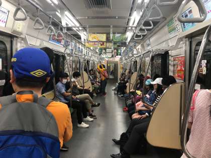 電車の中です。みんなマナーを守っておしゃべりも小さな声でしています。今日は全員参加です。