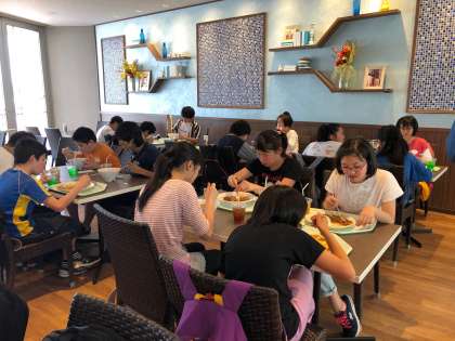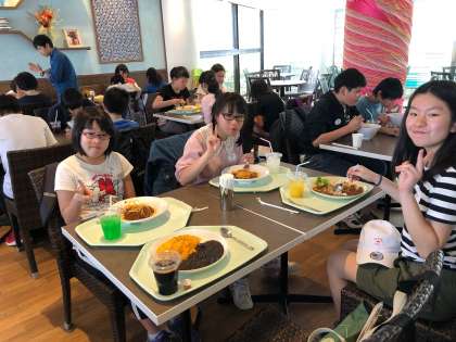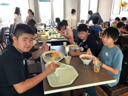 ようやく昼食です。レストランで事前に注文しておいたメニューを用意します。カレーライスや、ラーメン、スパゲティーミートソースが人気です。