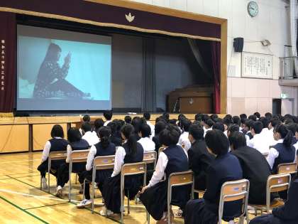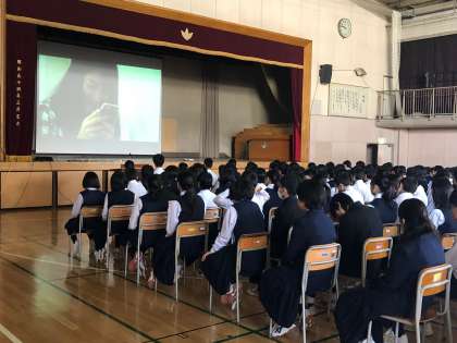 本日世田谷警察のスクールサポーターの方に来ていただき、セーフティ教室が行われました。最初に、無料ラインスタンプをめぐってのSNSのトラブルについてDVDを視聴し、問題点について考えました。「個人情報や画像を安易にネットにあげない、送らない」「無料という言葉にとびつかない」などのお話をいただきました。