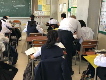 授業がんばっています 公開日 2019/05/17 更新日 2019/05/17 できごと 1年生の数学の授業では、中間考査の返却をしていました。先生が、テストについてコメントしながら一人ひとりにテスト返却をしています。返却されたテストを見た生徒たちは一喜一憂していましたが、今回のテストで間違えが多かった問題を確認、反省して「反省プリント」に反省すべきことや次回に向けての目標を書いていました。テストは、終わった後にその結果をどのように繋げていくかが大切ですね。