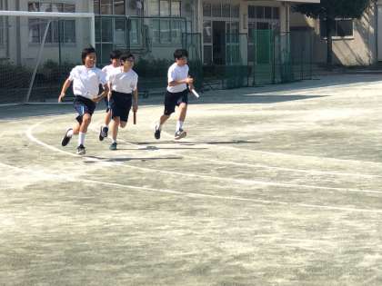 授業がんばっています 公開日 2019/05/17 更新日 2019/05/17 できごと 1年生の男子保健体育の授業では、リレーのバトンパスの練習をしていました。どうやったらスムーズにバトンを渡せるのか、生徒たちはバトンの受け渡しの練習を繰り返していました。練習した成果が運動会で発揮できるといいですね。