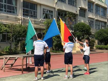 行進や選手宣誓の練習、ラジオ体操、校歌の練習を行いました。