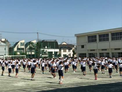 暑い中でしたが、全校生徒と合わせて頑張りました。
