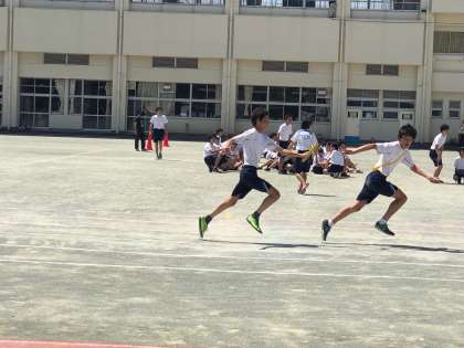 今日の1.2校時は、3年生の学年練習でした。後半は、全員リレーの練習と、むかで競争の練習でした。全員リレーは、今日は青、赤、黄の順にゴールしましたが、まだまだ作戦次第では、当日はわかりません。むかで競争は、みんなでかけ声をかけあって、頑張っていました。3年生にとっては松中最後の運動会、きっと最上級生として素晴らしい運動会を創り上げてくれることでしょう。