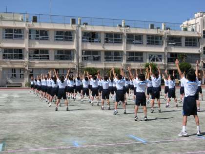午後は1年生の学年練習です。 中学生として初めてむかえる運動会。 元気いっぱい、仲間と一緒に練習しています。