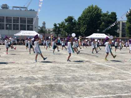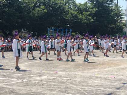 4年生のエイサーの披露の様子です。みんな堂々と演技しています。