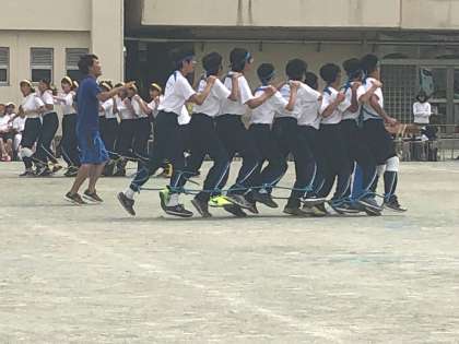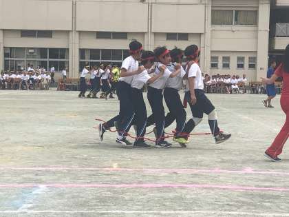 第70回運動会18 公開日 2019/06/01 更新日 2019/06/01 できごと 2年生学年種目「増足むかでリレー」は、だんだん足が増えて人数が多くなっていきます。担任の先生も応援でむかでといっしょに走っていました。