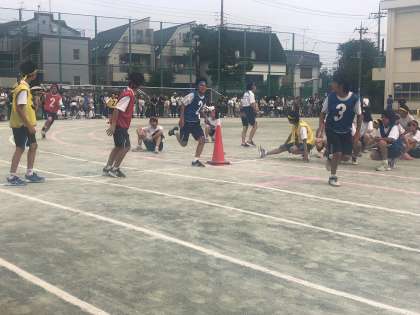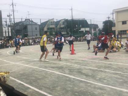 第70回運動会20 公開日 2019/06/01 更新日 2019/06/01 できごと いよいよ最後の種目ら学級対抗リレーです。1年生女子、1年生男子と続きます。1年生女子は赤組、男子は青組が1位でゴールしました。