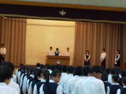 今朝は校長先生が出張で不在のため、副校長先生から賞状が渡されました。