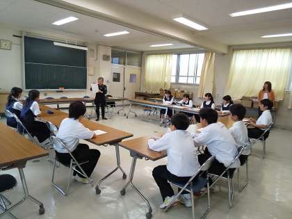 老人ホームのボランティア説明会 公開日 2019/06/11 更新日 2019/06/11 できごと 本校では地域の方のご尽力により、 老人ホームで生徒の有志がボランティアをさせていただいています。 本日の昼休みにその説明会が行われました。 今回は特に一年生がたくさん参加の希望を出してくれました。 少しでも地域に貢献したいという気持ちが素晴らしいですね。 当日もぜひしっかりと活動して、 お年寄りのみなさんに喜んでもらってください!