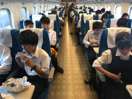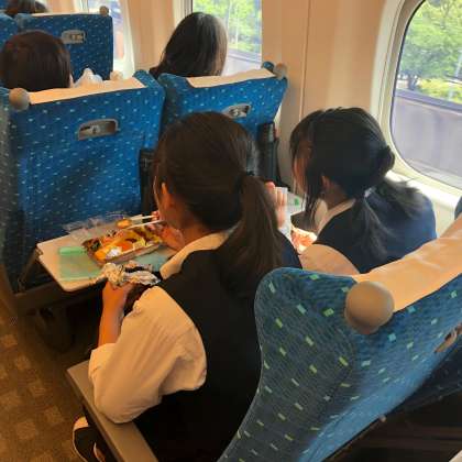 修学旅行1日め 公開日 2019/06/13 更新日 2019/06/13 できごと 名古屋に到着しました。楽しいランチタイムです。朝早くからお弁当を作ってくださった保護者の皆さま、ありがとうございます!